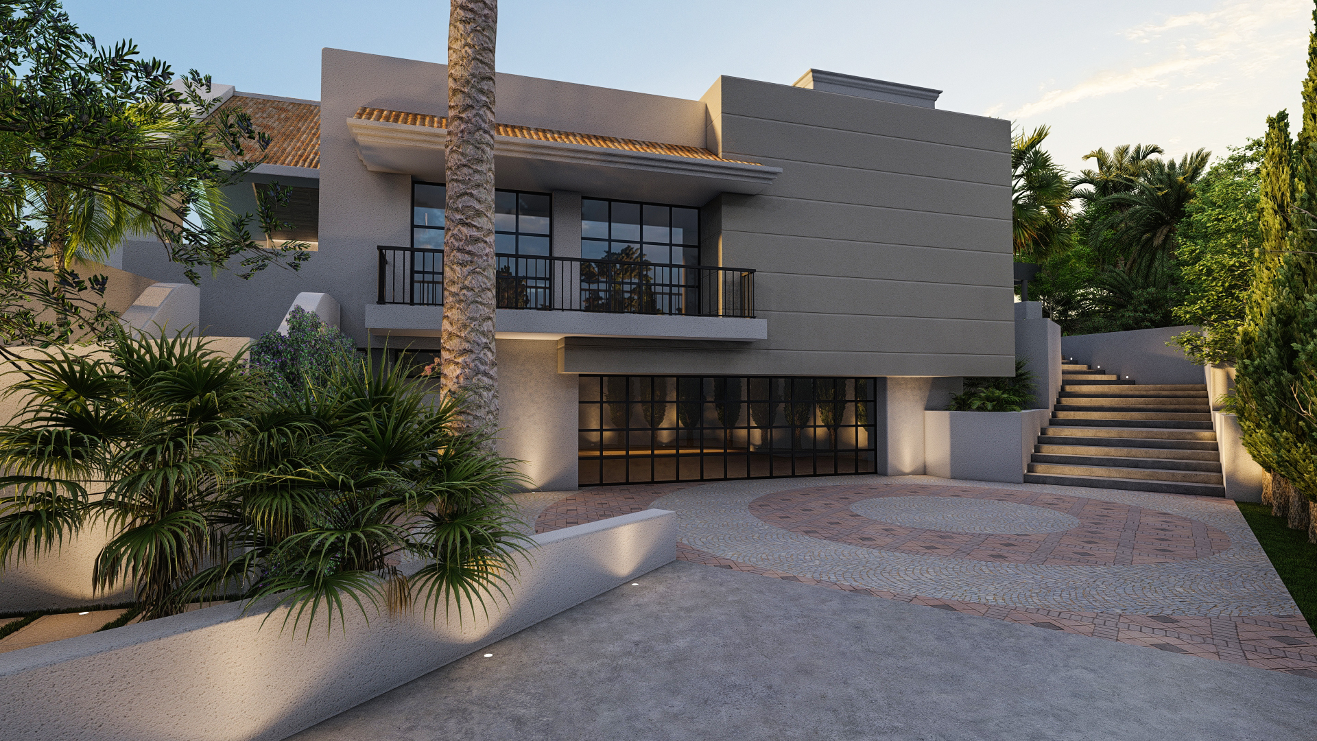 Casa Flamenco – Current collaboration with Casas Fintech, a brand new project in Nueva Andalucía. This grand entrance, adorned with lush greenery and a fountain, marks the beginning of an exciting new chapter. Redefining lifestyles. Stay tuned for more updates on this incredible villa.